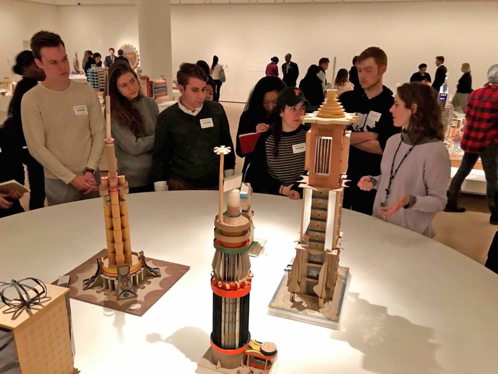 Princeton students studying Architecture and Urban Studies participated in a field trip to the Museum of Modern Art to see the exhibitions “Bodys Isek Kingelez: City Dreams” and “Towards a Concrete Utopia: Architecture in Yugoslavia, 1948-1980.” The Center for Architecture, Urbanism and Infrastructure (PUIC) and the Princeton Mellon Initiative in Architecture, Urbanism and the Humanities co-sponsored the event, which included a tour by MoMA curator Hillary Reder.