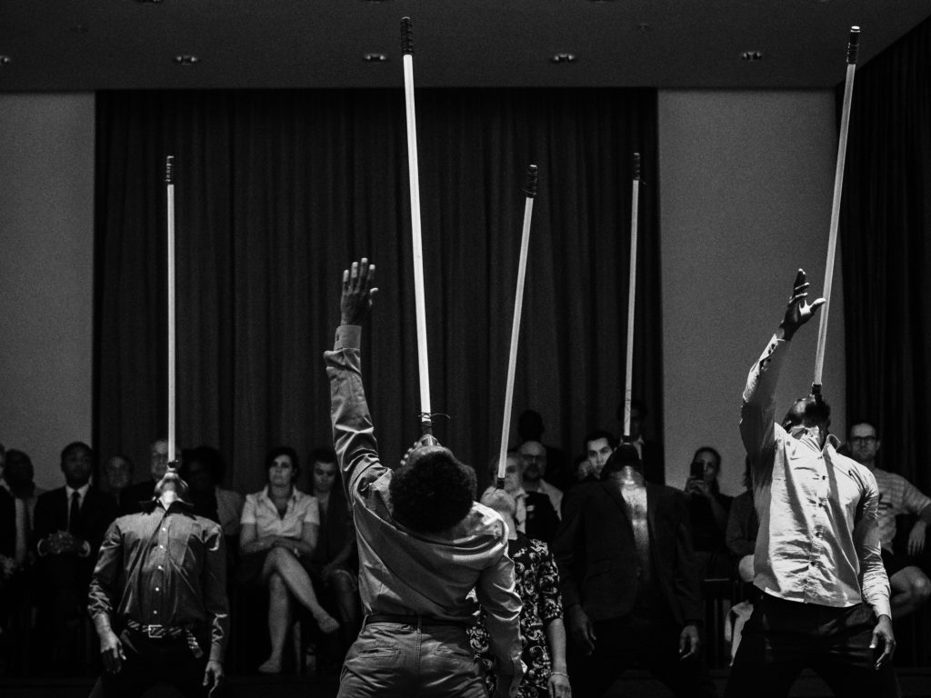 The multi-disciplinary artist Olivier Tarpaga’s new work “I Guess You Solved the Question” premiered to a sold-out audience during the Chicago Architecture Biennial. Photos of the performance.