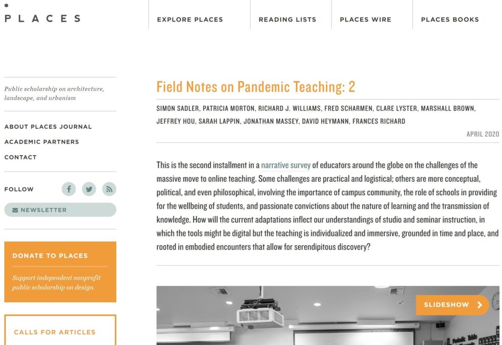 A narrative survey of educators on the challenges of the massive transition to online teaching. Director Marshall Brown shared his thoughts on online education platforms. More information.